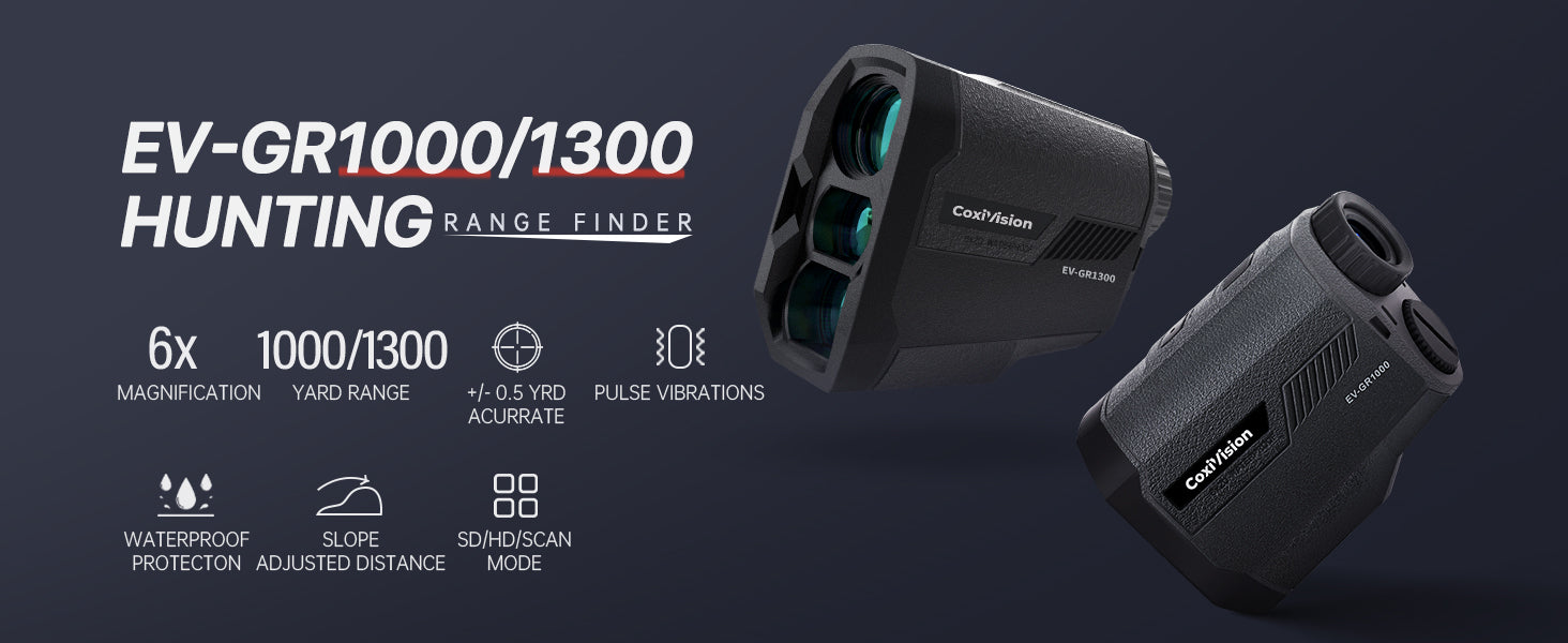CoxiVision Rangefinder with Slope for Golf & Hunting, 1300 Yards High-Precision Range Finder, 6X Magnification, Flagpole-Lock Vibration, Bow/Rifle Mode, Slope Measurement