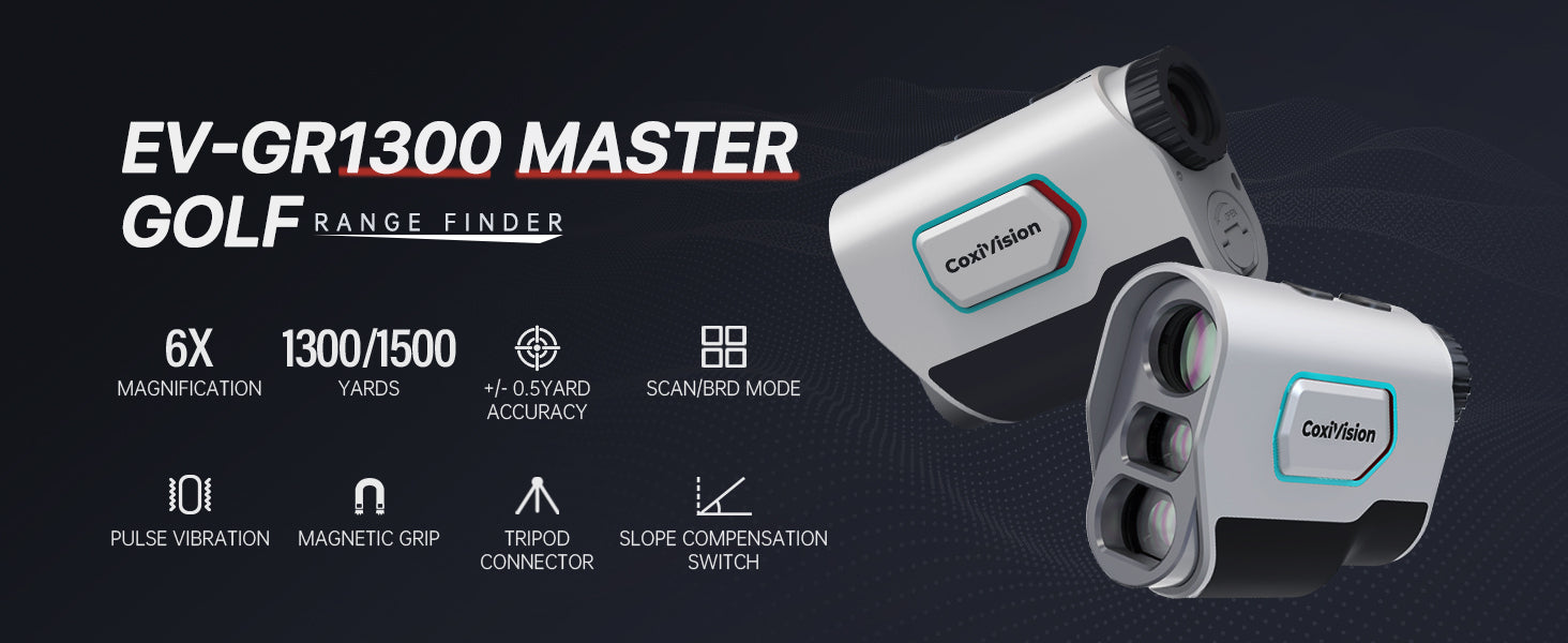 CoxiVision Rangefinder for Golf & Hunting, 1300 Yards High-Precision Range Finder, 6X Magnification, Pin-Seeker & Flag-Lock & Vibration